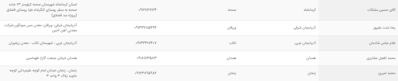 لیست نمایندگی ها